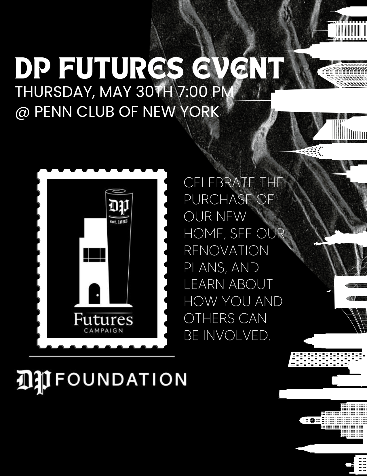 Fundraising Updates Sophia-Nicole Bay 5/3/24 Fundraising Updates Sophia-Nicole Bay 5/3/24 Thank You to Our Generous Donors! Read More Current Staff Updates Sophia-Nicole Bay 5/3/24 Current Staff Updates Sophia-Nicole Bay 5/3/24 The DP Editorial Staff Read More Print Editions Steven Molberger 4/19/24 Print Editions Steven Molberger 4/19/24 Print Edition: April 18th, 2024 Read More Events Steven Molberger 4/18/24 Events Steven Molberger 4/18/24 RSVP OPEN FOR MAY 30TH DP FUTURES EVENT IN NYC Read More Fundraising Updates Steven Molberger 4/18/24 Fundraising Updates Steven Molberger 4/18/24 The DP Wins national fundraising competition for third straight year! Read More Events Steven Molberger 4/18/24 Events Steven Molberger 4/18/24 SAVE THE DATE: The DP’s 140th Anniversary Weekend Read More Newer Posts Older Posts Share your good news! Daily Penn Alumni Front Page Update Name * First Name Last Name Email * Class Year * DP Connection * Message to be shared on dailypennalumni.com and alumni social media accounts * Share personal achievements, exciting news in your community, career updates and professional opportunities for others... Thank you for your submission! Your message will be reviewed, formatted and shared on our site in the next 24-48 hours.